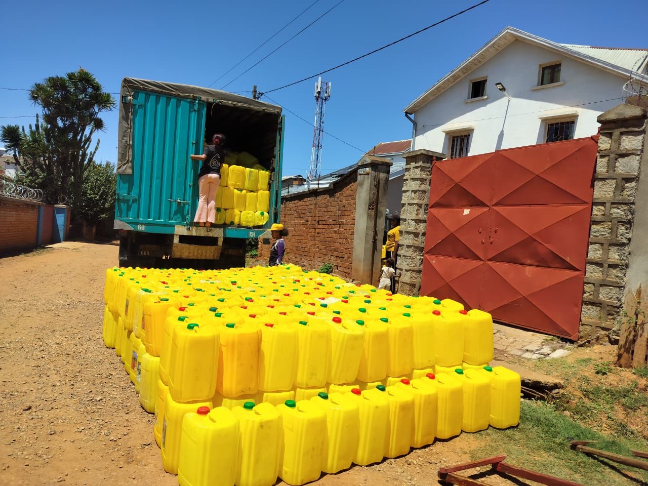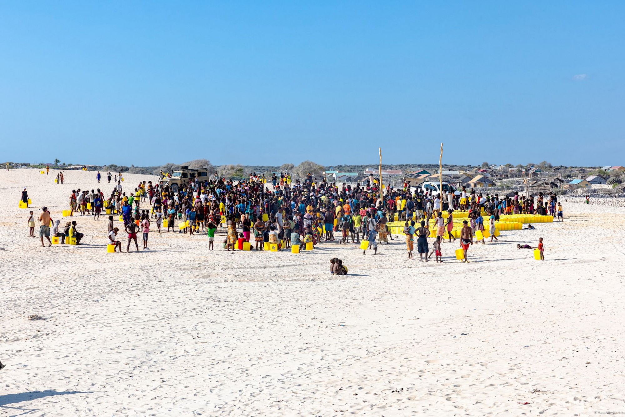 In de bijlagen vinden jullie beeldmateriaal van de 850 km lange route, een traject van 35 uur, waarlangs 2.000 waterjerrycans werden verzameld, vervoerd en per boot versleept naar het afgelegen dorp Tsiandamba, alsook de link naar de alreeds gedeelde content van het event.