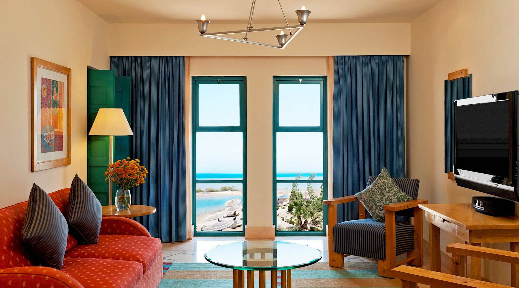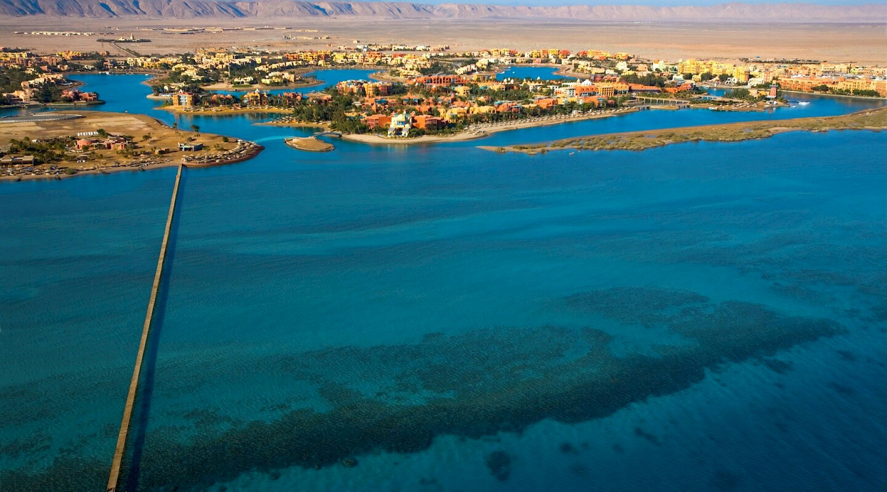 LieuUne symphonie multicolore composée par les briques rouges et le sable doré du désert contraste avec le bleu de la mer et de l'horizon. Diverses îles reliées entre elles par des ponts préservent votre intimité.