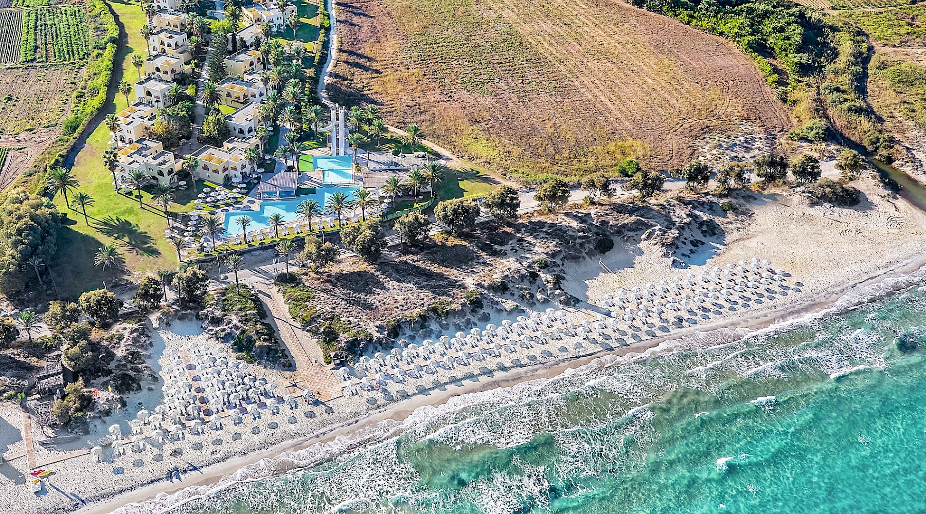 Dit familiehotel is ideaal gelegen aan een idyllisch kustlijn met zandduinen, op 2km van het dorpje Marmari. De vernieuwde kamers en tuinbungalows hebben een bohemian sfeer. Voor onbeperkt all-inclusive dineren is er nu de Griekse Plateia ("dorpsplein") waar van alles te doen is: wereldkeuken, live cooking, café en drankjes, muziek, dans en festiviteiten. Ook de nieuwe strandzone zal je verbazen. Dit familie gerichte hotel is dé plek voor spelletjes, sport, zwembaden, snacks, drankjes, en waterglijbanen.