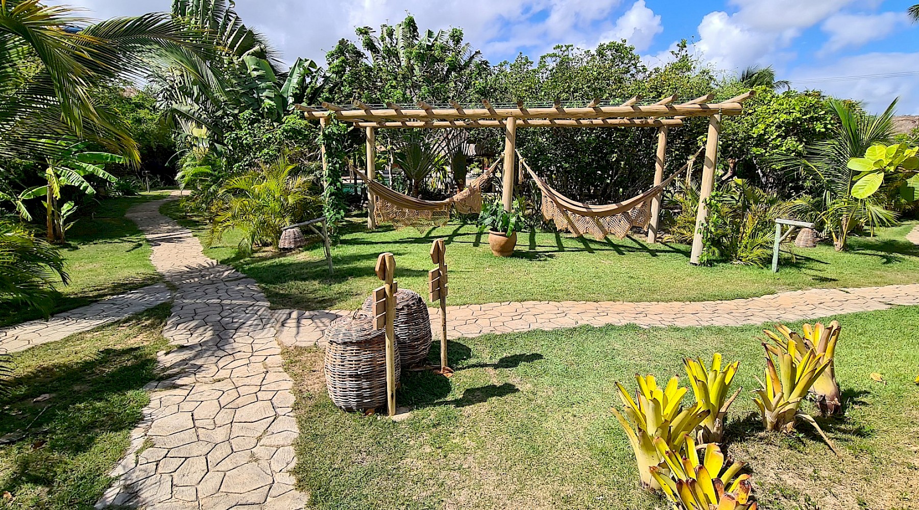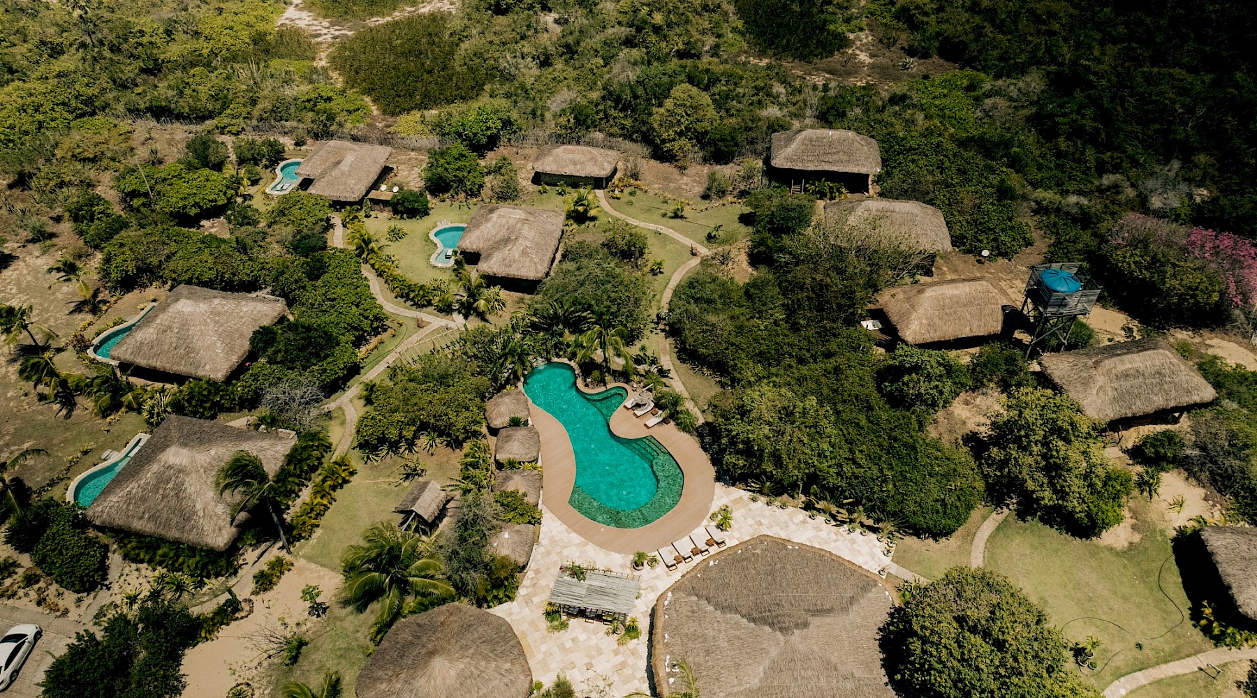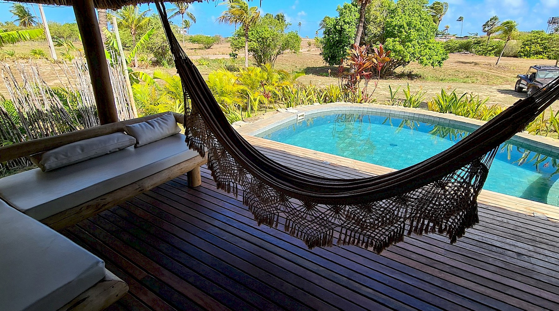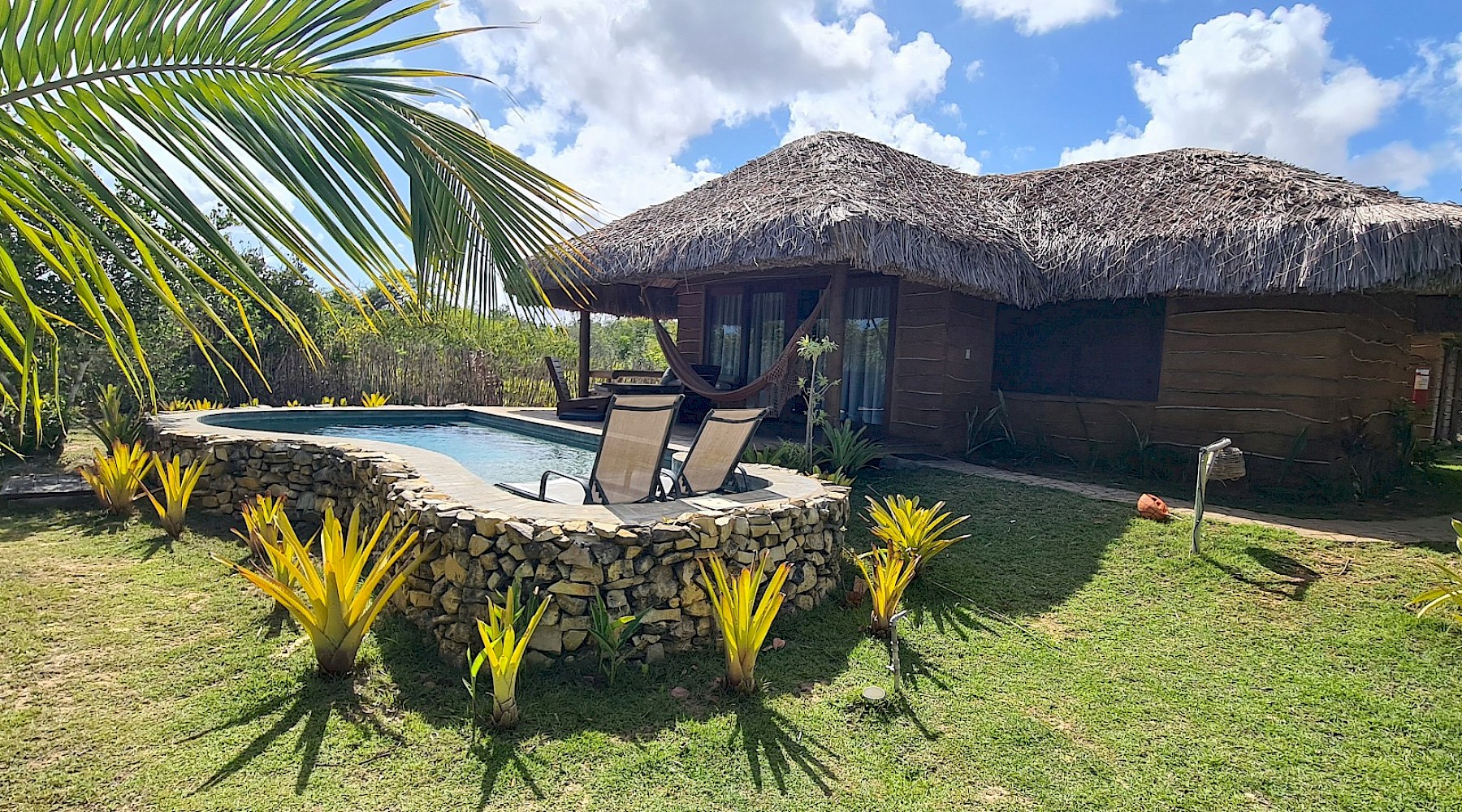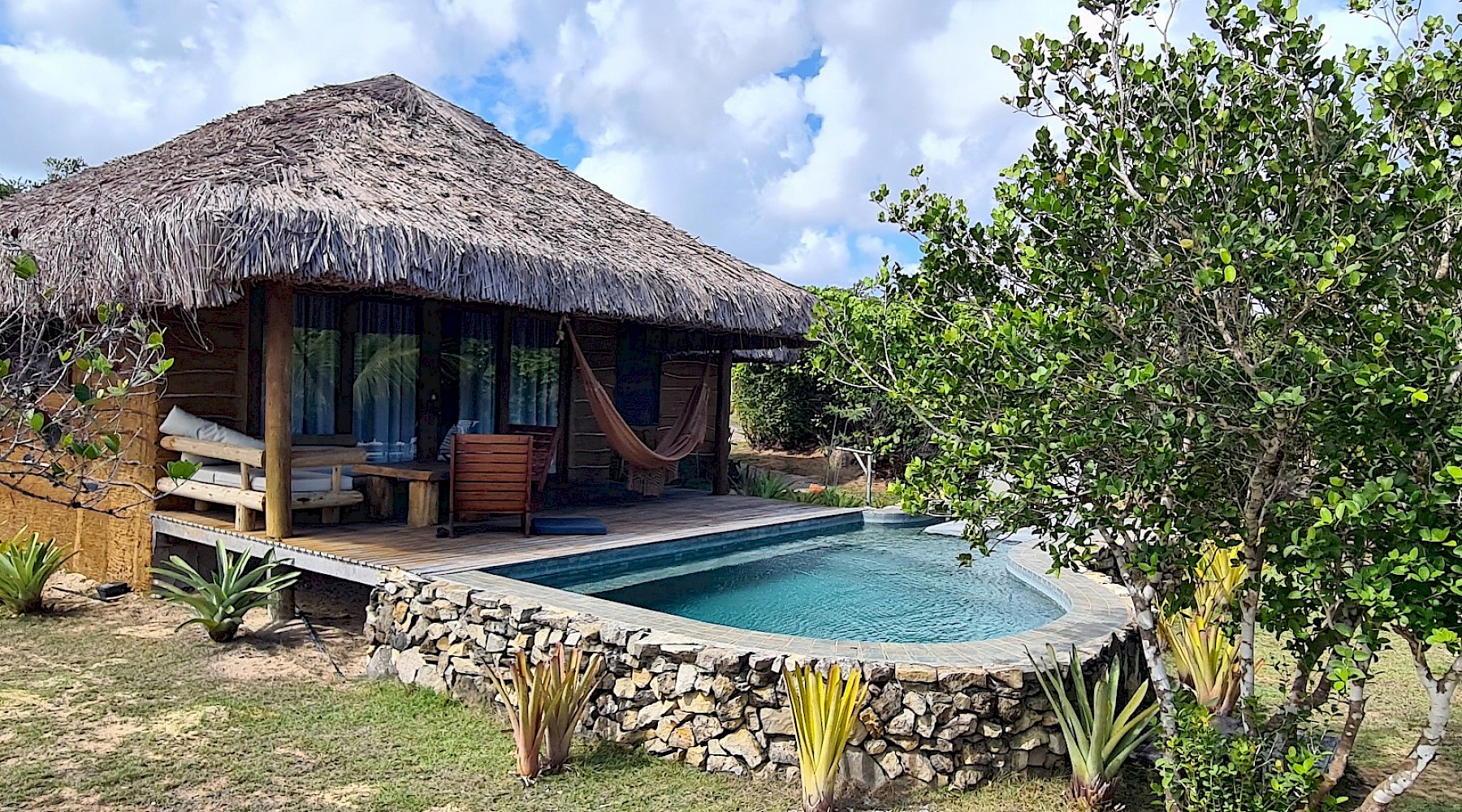 Our bungalows are strategically directed towards the beach, inserted in the middle of the exotic tropical vegetation, but with a lot of comfort! Our external structures are replicas of the traditional native taipa houses (imitations of construction made of clay and wood) with roofs of thatch (native plant typical of the flooded regions of the northeastern interior), but with a cozy interior that offers a king size bed, air conditioning, fans, minibar, safe box, jacuzzi (in deluxe suites), espresso coffee machine, and a relaxing balcony with a hammock and a beautiful view of the beach.
