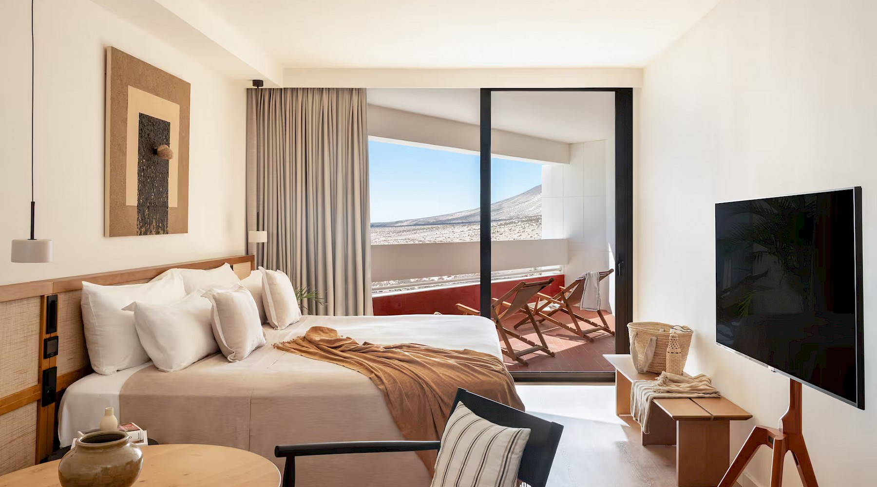 * Melia kamer panoramisch zeezicht: Ruime tweepersoonskamers van ongeveer 26 m2 met balkons met prachtig uitzicht op het strand van Sotavento en het Jandia National Park, aan de zonnigste kant van het hotel. Deze kamers zijn voorzien van een tweepersoonsbed of twee eenpersoonsbedden (op aanvraag en bij aankomst in het hotel).