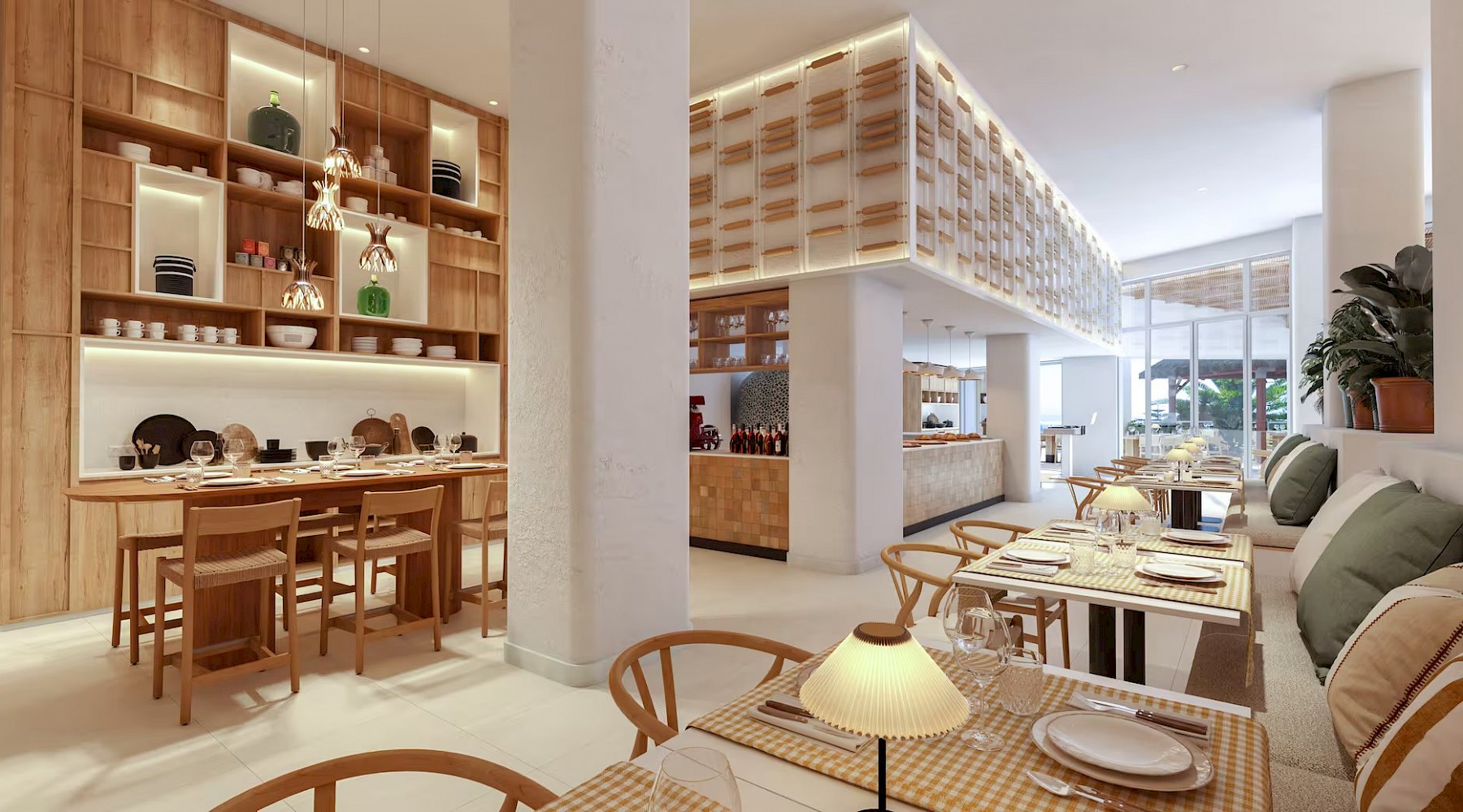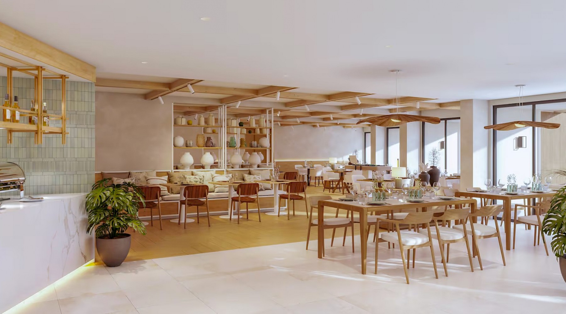 Restaurant à la carte en buffet, bar, salon, shops, wasdienst.